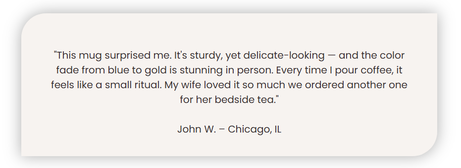 Hand-blown by skilled artisans, the mug fades gracefully from deep ocean blue to pearl white and warm golden amber. The way it glows in natural light brings soft, uplifting warmth that can instantly lift your mood and ease your mind.