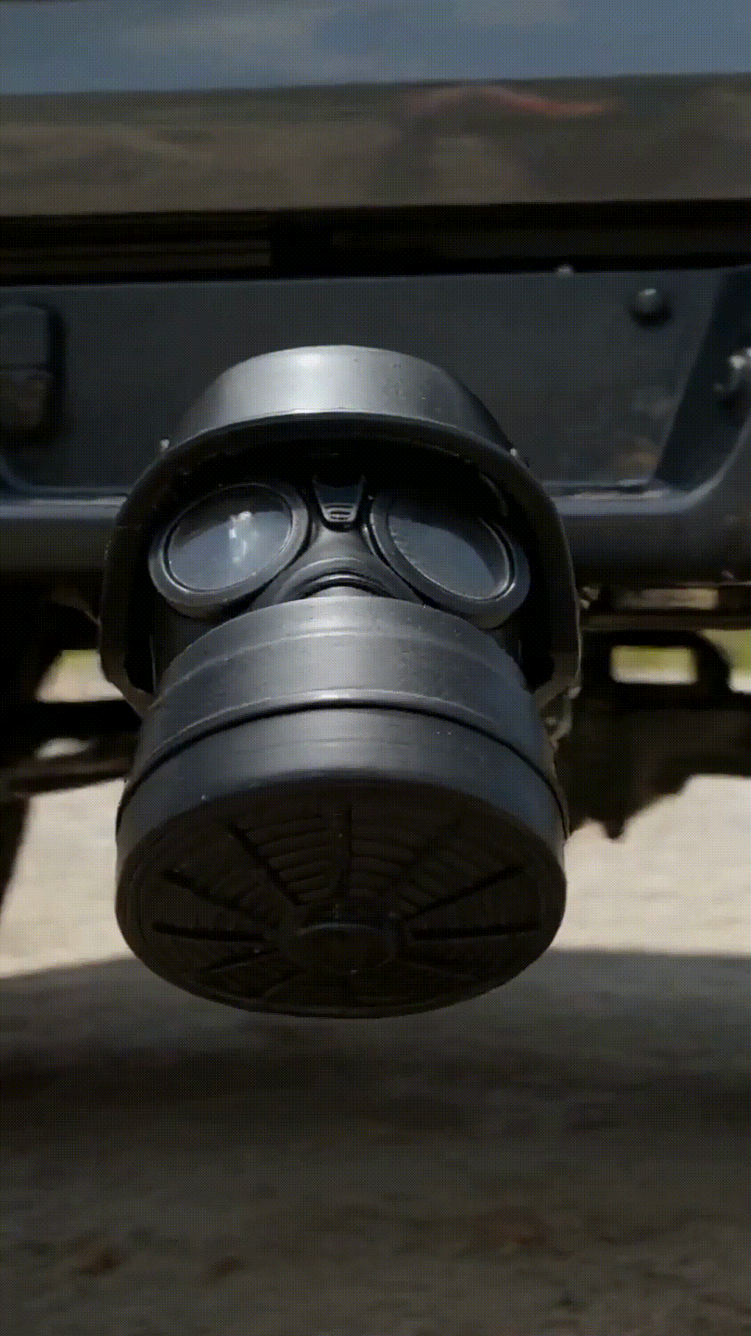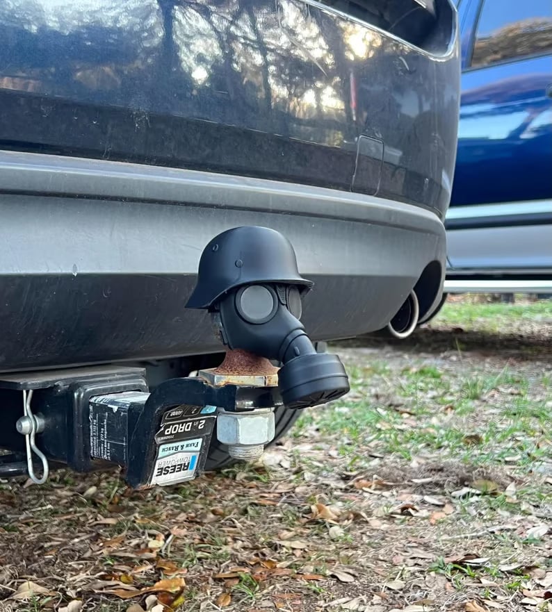 This gas mask trailer hitch cover transforms the rear of your vehicle into an eye-catching statement.